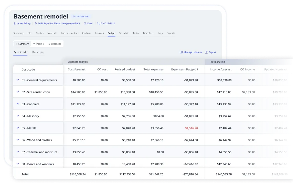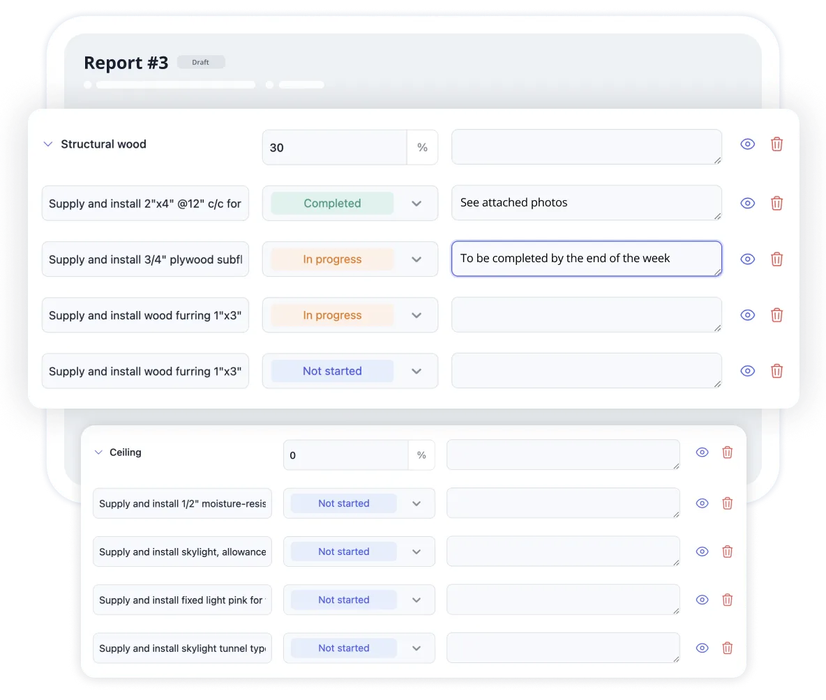 - Exportations de conformité: générez des rapports indiquant le respect du code, le contrôle budgétaire et l'état de la garantie afin d'impressionner les inspecteurs ou les souscripteurs si un suivi est nécessaire.