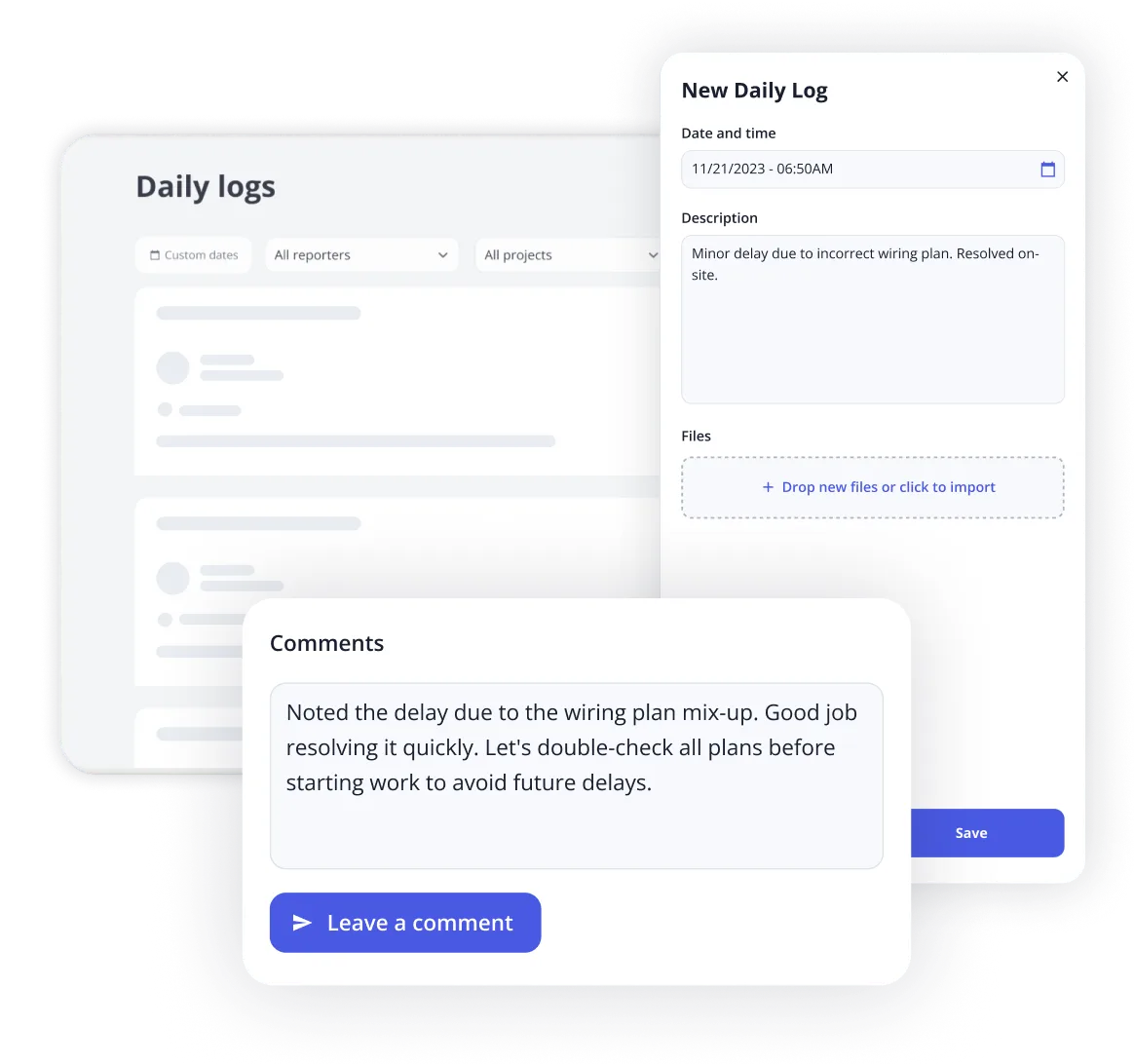 - Inspections vérifiées par photo : utilisez les journaux quotidiens pour prendre des photos « avant recouvrement » de l'isolation et des pare-air. Si un inspecteur remet en question la continuité de votre pare-vapeur après la pose des cloisons sèches, votre journal vérifié par photo sert de preuve professionnelle, ce qui peut vous éviter une ordonnance de « réouverture ».